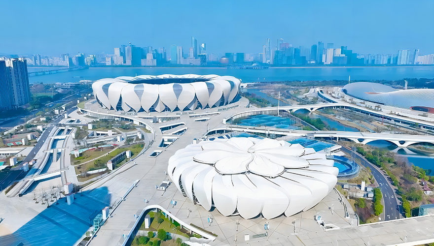 杭州奧體中心網(wǎng)球中心,又名“小蓮花”,以花瓣設(shè)計造型,由24片“小花瓣”和8片會旋轉(zhuǎn)的“大花瓣”組成,首創(chuàng)“旋轉(zhuǎn)開閉”屋頂,可根據(jù)天氣情況旋轉(zhuǎn)開合;為杭州第19屆亞運會網(wǎng)球比賽場館。