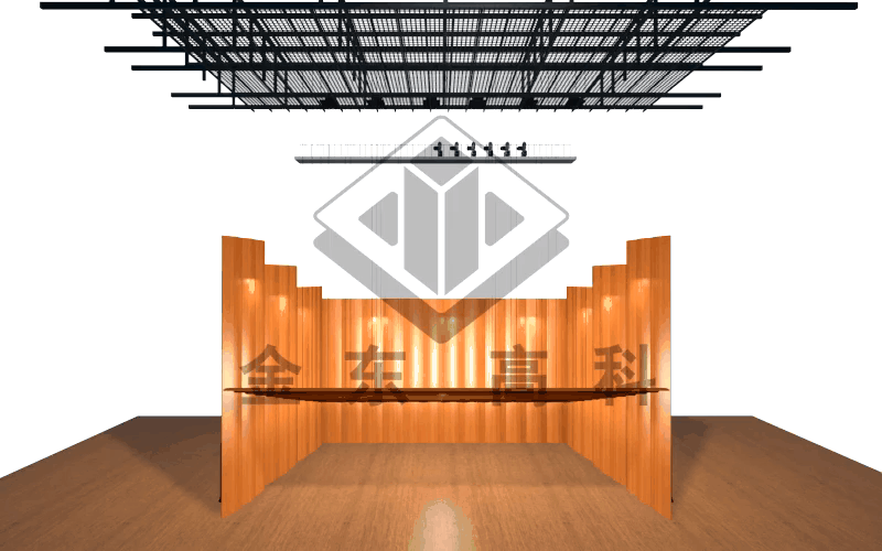 •設(shè)備位置:反聲罩平時收于舞臺上空和后區(qū)地面,使用時,在臺口位置組裝。